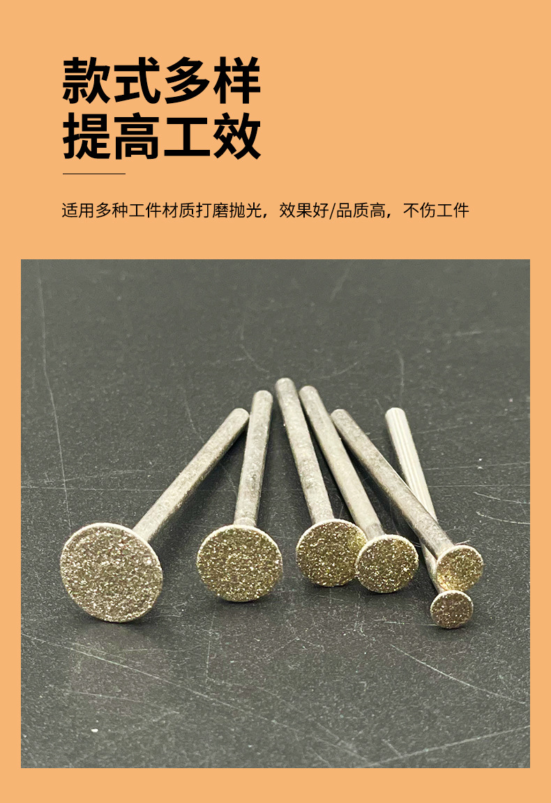 金剛石磨針金剛砂磨頭玻璃石頭刻字玉石開窗去皮雕刻2.35mm柄徑